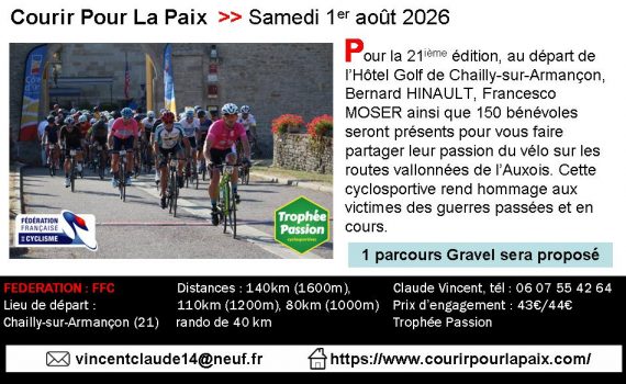 Depuis le Château de Chailly-sur-Armançon, 200 bénévoles mettront tout en œuvre pour que cette XXième édition soit une fête du vélo dans la convivialité le samedi 2 août 2025.